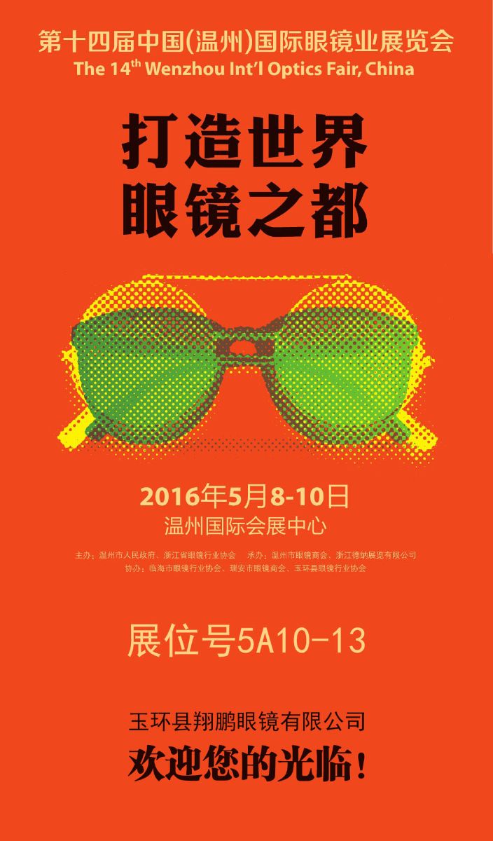 2016年5月8-10日 第十四届中国(温州)眼镜展览会 展位号5A10-13